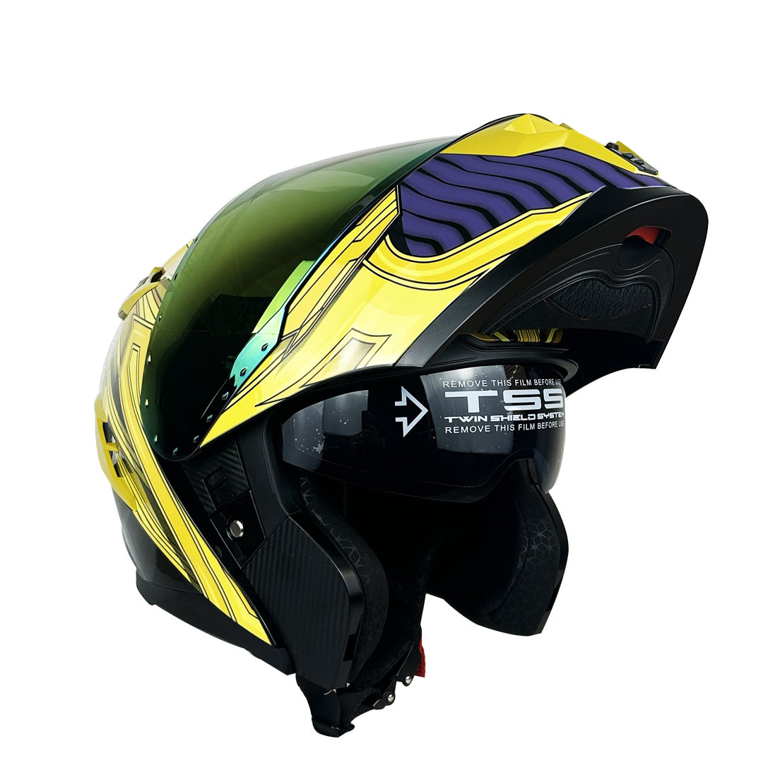Casco Abatible ✔ CALOTA Fabricada con material ABS de alta resistencia. ✔ NORMA DOT: Declaración otorgada por el Departamento de Transito de Estados Unidos (DOT) que abala que el casco protege el 90% de tipos de impacto al conducir. ✔ VENTILACIÓN: Optimizada para reducir la resistencia del viento y la turbulencia por arrastre al conducir. ✔ MICA EXTERNA E INTERNA: De Fácil liberación, resistente a los rayones y...